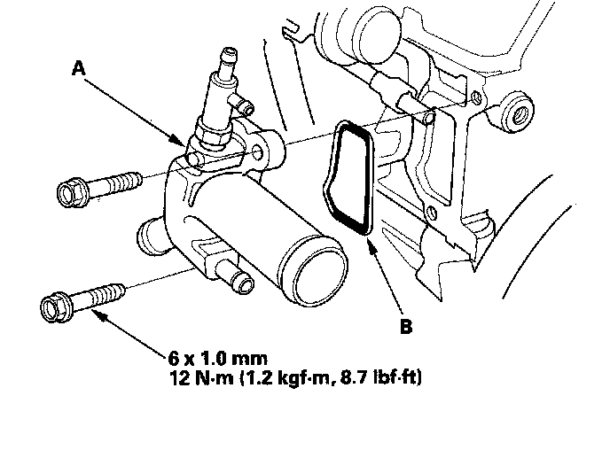 Replace the water outlet (A). Discard the old O-ring (B) and replace it with a new one.