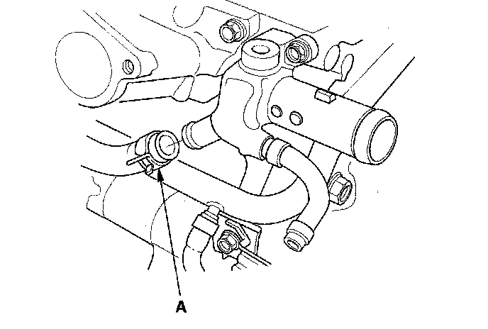 6. Remove the water bypass hose (A).