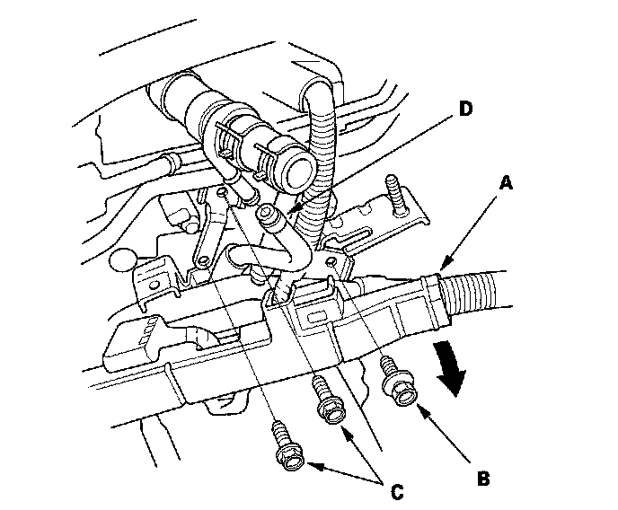 12. Remove the water bypass hose (D).
