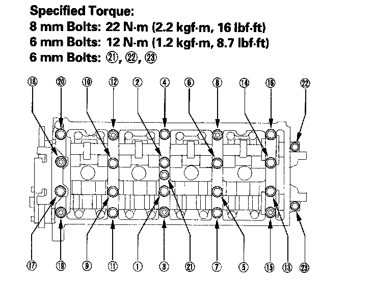 NOTE: If the engine does not have bolt (21), skip it and continue the torque sequence.
