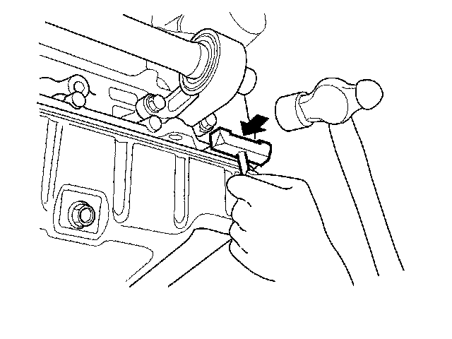 4. Cut the oil pan seal by striking the side of the cutter to slide the cutter along the oil pan.