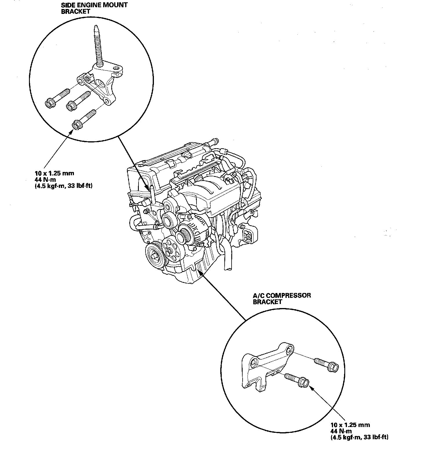 Engine Installation1. Install the accessory brackets, and tighten their bolts to the specified torques.