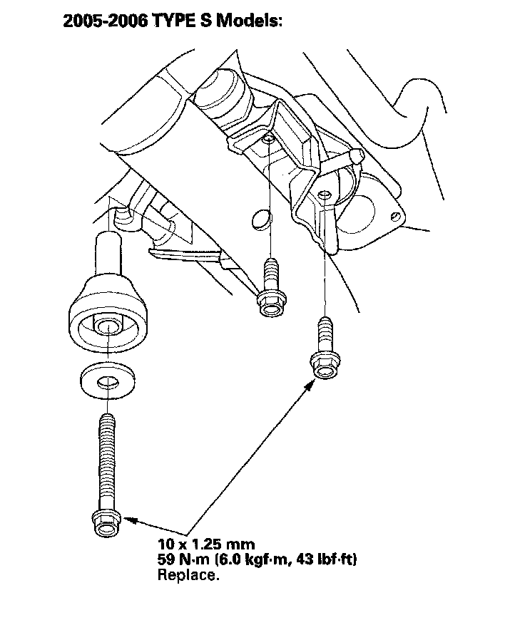 5. Tighten the rear mount mounting bolts.