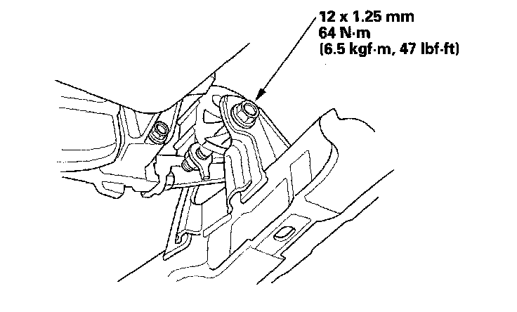 11. Loosen the front engine mount bracket mounting bolt, then tighten it to the specified torque.