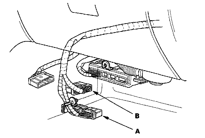 33. Connect the ECM/PCM connectors (A) and main wire harness connector (B).