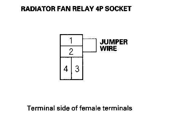 4. Connect radiator fan relay 4P socket terminals No. 1 and No. 2 with a jumper wire.