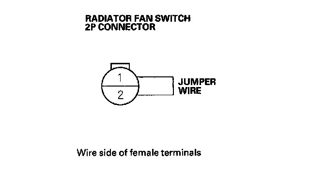 12. Connect radiator fan switch 2P connector terminals No. 1 and No. 2 with a jumper wire.