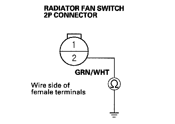 Radiator Fan Switch Circuit Troubleshooting (Short)1. Remove the radiator fan relay from the under-hood fuse/relay box, and test it.