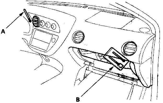 4. Insert a thermometer (A) in the center vent, and place a thermometer (B) near the blower unit.