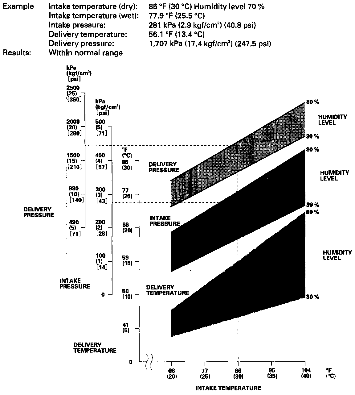 - Mark the intake temperature (ambient air temperature) along the bottom line.