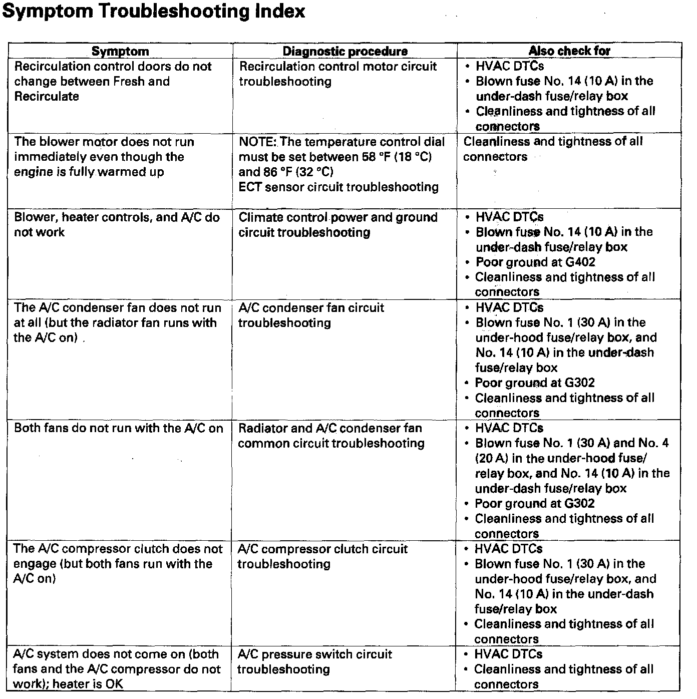 Symptom Troubleshooting Index: