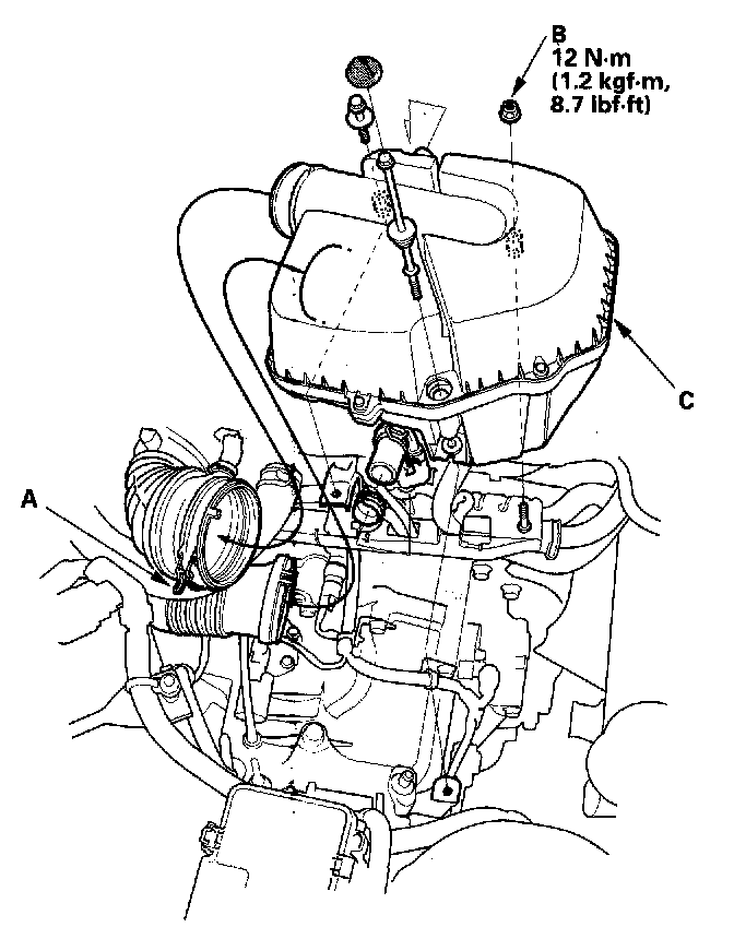 Remove the air cleaner (C).