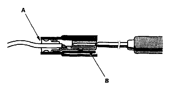 3. If you cannot get to the wire side of the connector or the wire side is sealed (A), disconnect the connector and probe the terminals (B) from the terminal side. Do not force the probe into the connector.