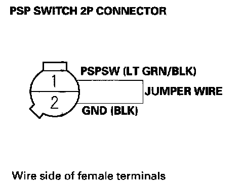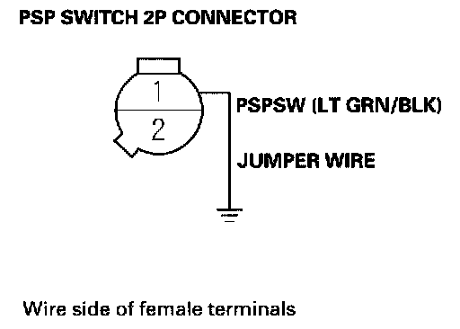 17. Remove the jumper wire from the PSP switch 2P connector.