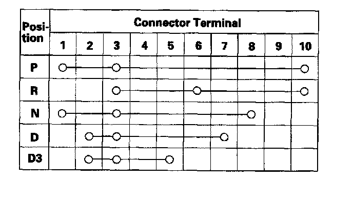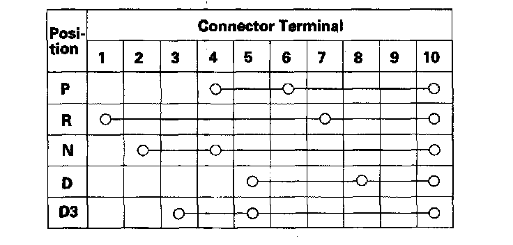 3. If there is no continuity between any terminals, remove the transmission range switch cover, and disconnect the connector at the switch.