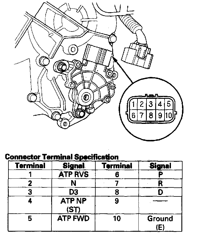 Transmission Range Switch Test1. Remove the transmission range switch harness connector (A) from the connector bracket (B), then disconnect the connector.