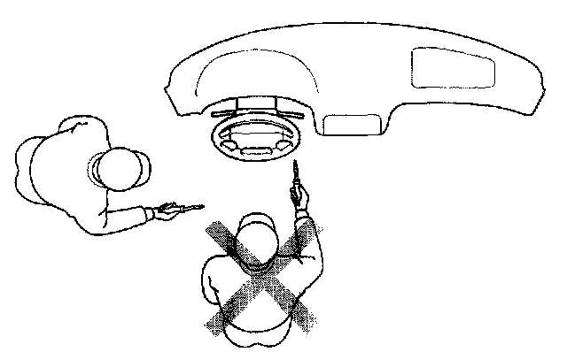 - Do not position yourself in front of the airbag during removal, inspection, or replacement.