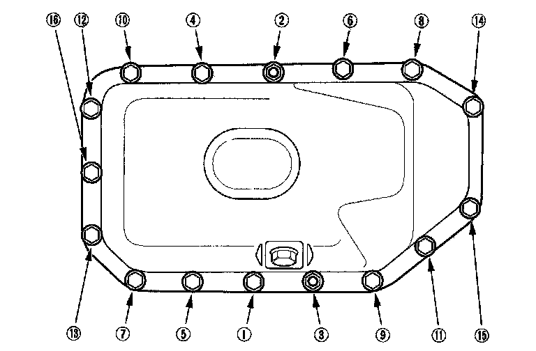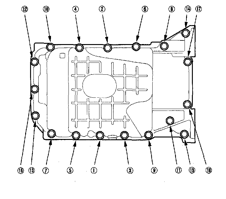 Tighten the bolts in two or three steps. In the final step, tighten all bolts in sequence to 12 Nm (1.2 kgf-m, 8.7 ft. lbs.). Wipe off the excess liquid gasket on the each side of crankshaft pulley and flywheel/drive plate.