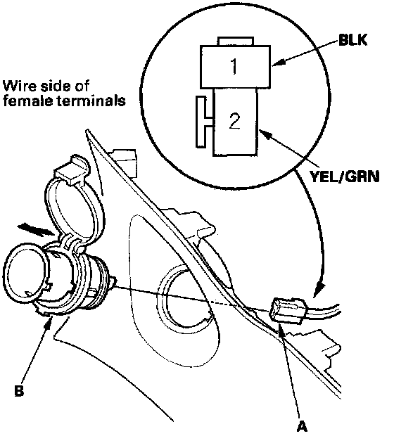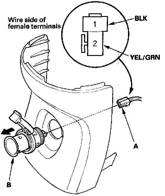 2. Disconnect the 2P connector (A) from the socket (B).