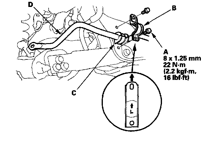 5. Install the stabilizer bar in the reverse order of removal, and note these items: