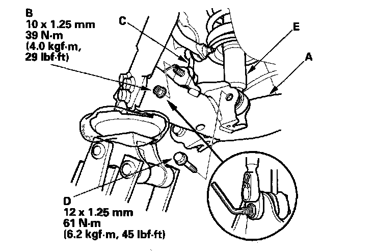NOTICE: Do not loosen the special bolts (B) on the trailing arm.