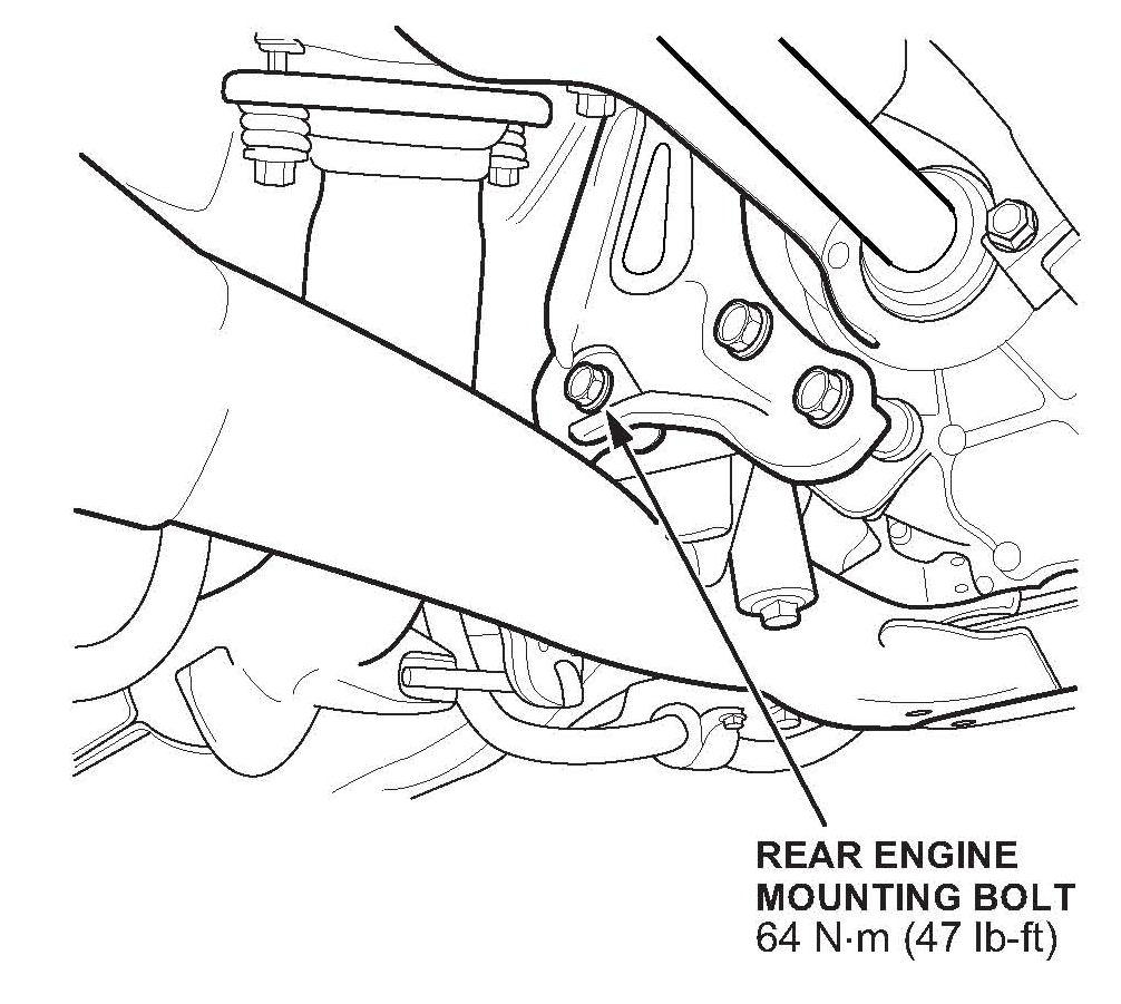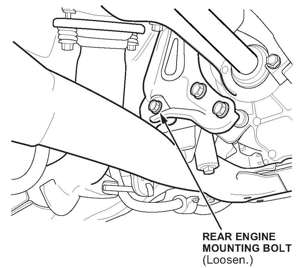 4. Loosen the rear engine mounting bolt two or three complete turns.