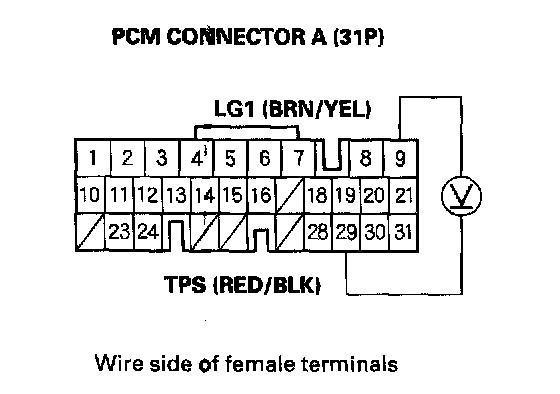 YES - Check for an open or a short in the wire between PCM connector terminal A29 and TP sensor. If the wire is OK, replace the TP sensor.