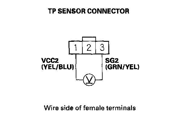 18. Measure the voltage between TP sensor connector terminals No. 1 and No. 3.