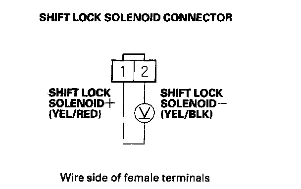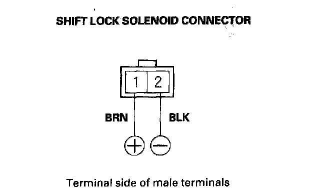 NOTE: Do not connect the battery positive terminal to terminal No. 2 or you will damage the diode inside the shift lock solenoid.