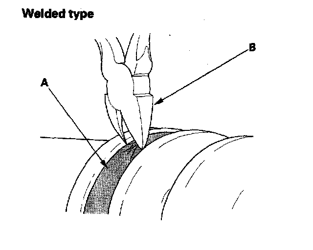 - If the boot band is a welded type (A), cut the boot band (B).