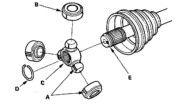 6. Mark the spider and driveshaft (E) to identify the position of the spider on the shaft.