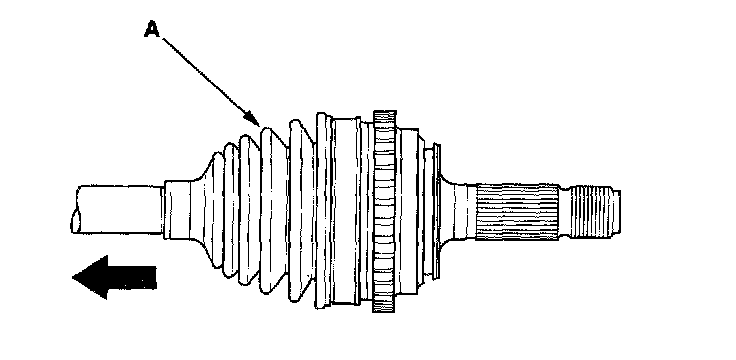 8. Wrap the splines on the driveshaft with vinyl tape (A) to prevent damage to the boot and dynamic damper.
