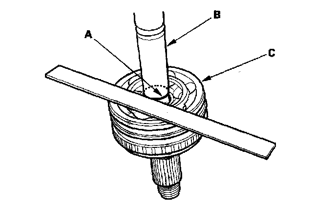 4. Make a mark (A) on the driveshaft (B) at the same position of the outboard joint end.