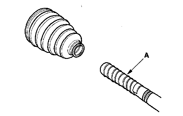 2. Slide the outboard boot (A) partially to the inboard joint side. Be careful not to damage the boot.
