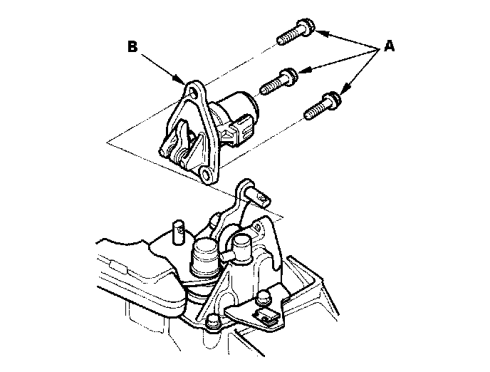9. Remove the bolts (A) and reverse lockout solenoid (B).
