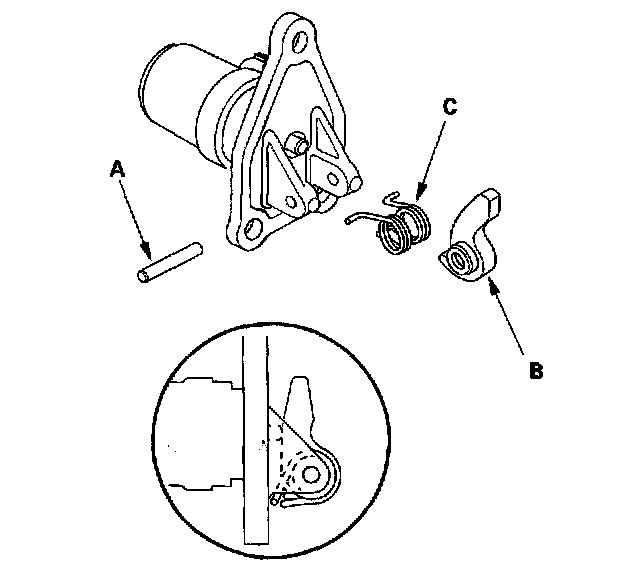 10. Remove the roller (A), the select lock return spring (C), and the select lock cam B.