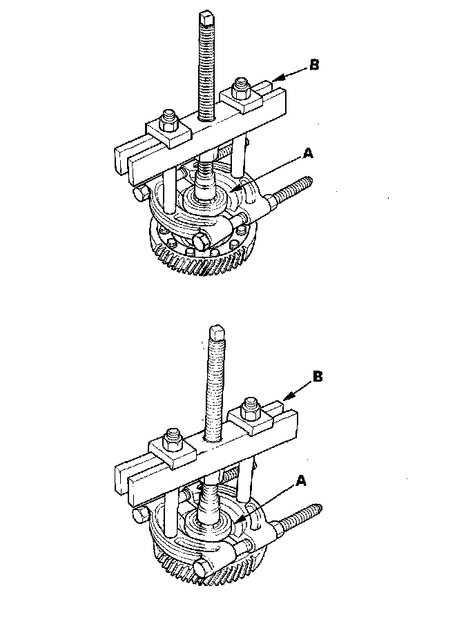 2. Remove the carrier bearing (A) with a commercially-available bearing puller (B).