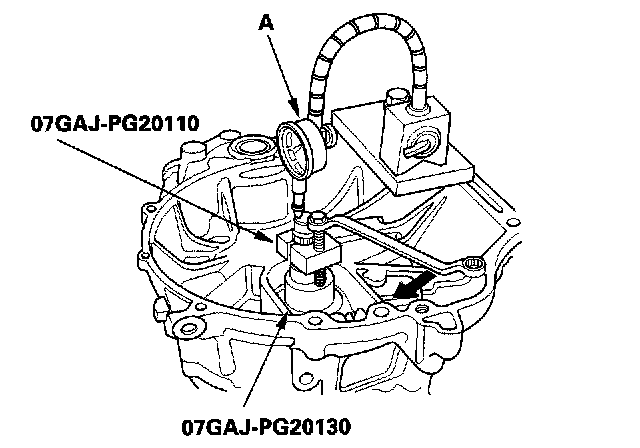 NOTE: Do not turn the mainshaft holder bolt more than 60 degrees after the needle of the dial gauge stops moving. Applying more pressure with the mainshaft holder bolt may damage the transmission.