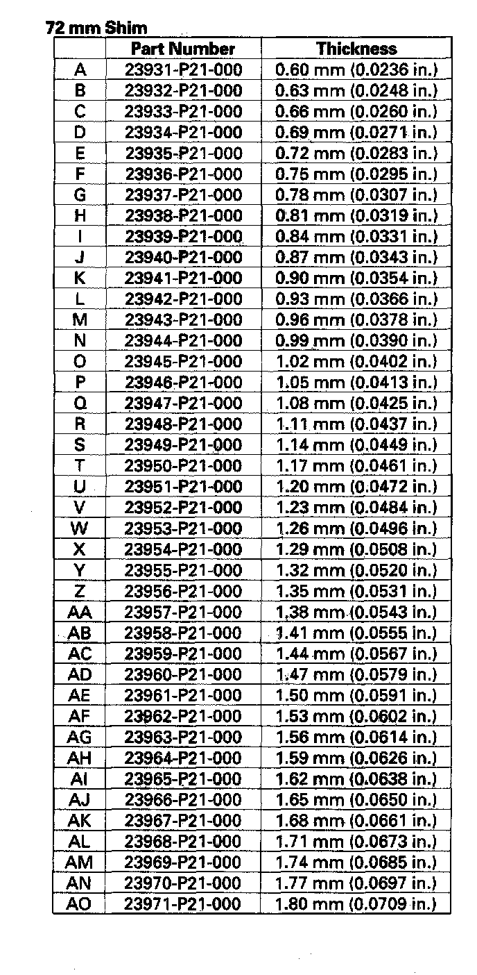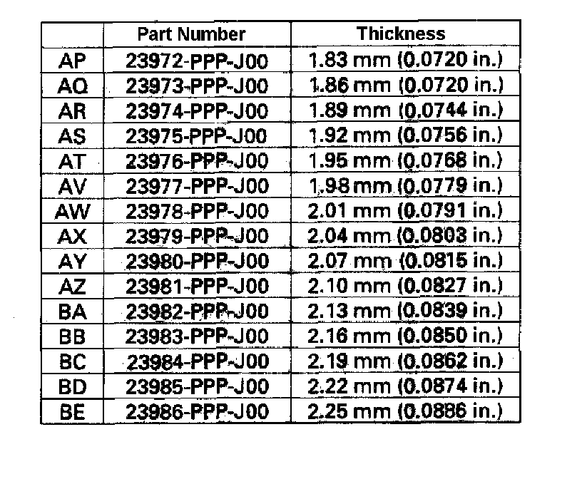 Select the shim closest to the amount calculated. For this example, the 1.80 mm (0.0709 inch) shim is best.