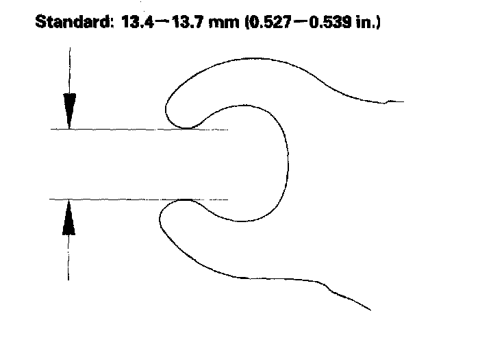 If the width is not within the standard, replace the reverse shift fork. If the width is within the standard, replace the reverse gear.