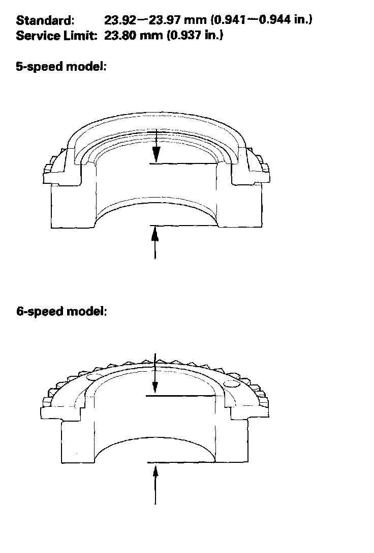 - If the thickness is within the service limit, replace the 5th synchro hub (5-speed model) or 5th/6th synchro hub (6 speed model).
