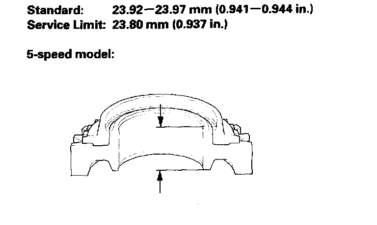 - If the thickness is less than the service limit, replace 5th gear.