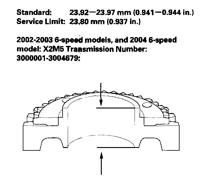 - If the thickness is within the service limit, replace the 5th/6th synchro hub.