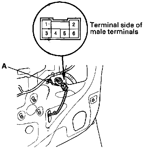 2. Disconnect the 6P connector (A) from the driver's window motor.