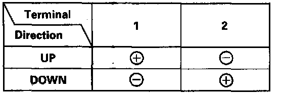 - Connect an analog voltmeter between the No.3 (+) and No.4 (-) terminals, and run the window motor down or up. The voltmeter needle should move back and forth alternately (a digital voltmeter should show the average voltage between 0-5 V).