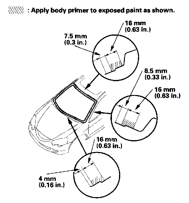 - Never touch the primed surfaces with your hands. If you do, the adhesive may not bond to the windshield properly, causing a leak after the windshield is installed.