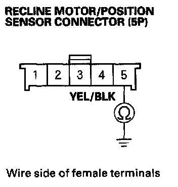 11. Check for continuity between the recline motor/position sensor connector (5P) No. 3 terminal and body ground.