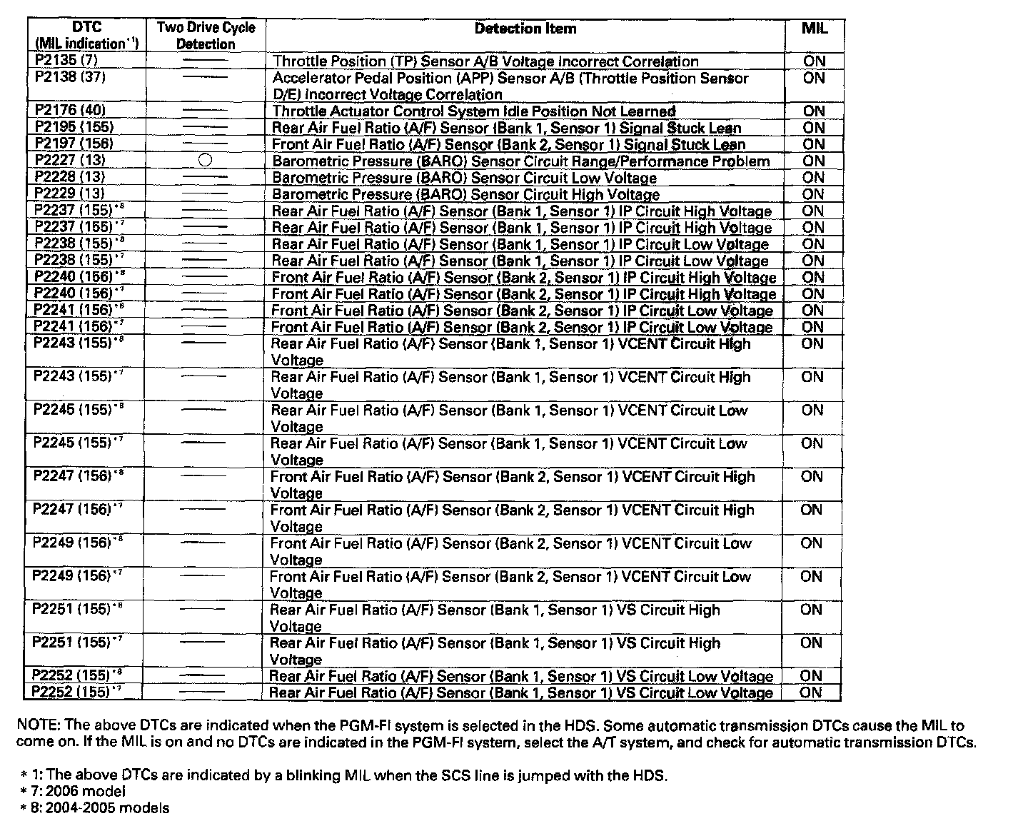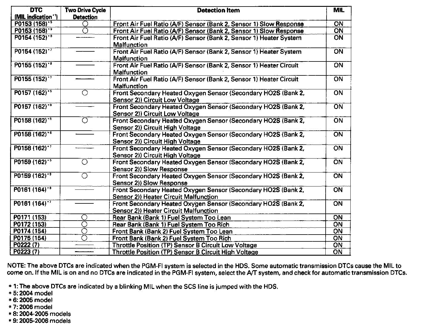P0153 - P0223:
