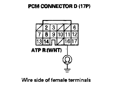17. Check for continuity between PCM connector terminal D16 and body ground.