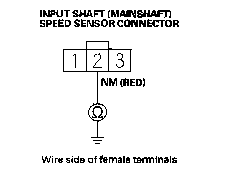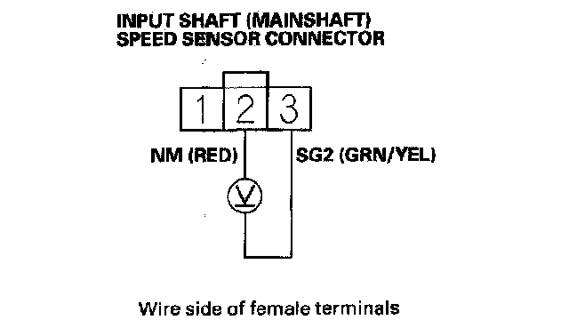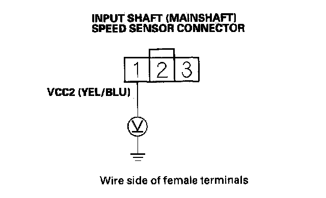 12. Measure the voltage between input shaft (mainshaft) speed sensor connector terminal No. 1 and body ground.